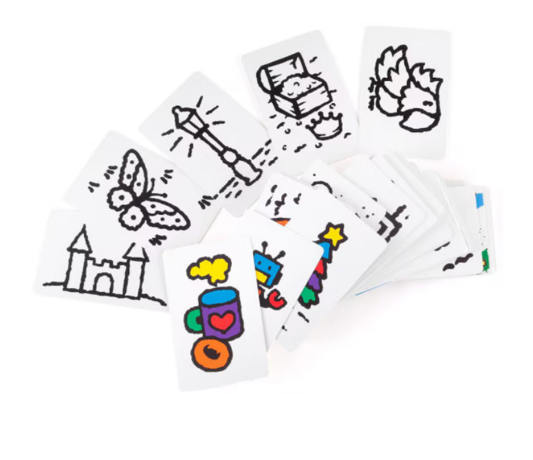Contine: 55 de carti cu imagini, 5 carti de punctaj, 6 carioci cu buretei si regulament in limba romana.