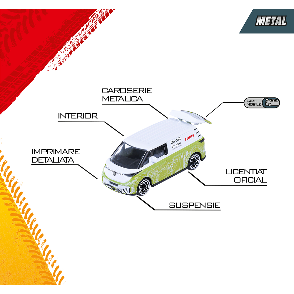 - Setul include: Claas Torion 956-537 Sinus, Claas Arion 660, Claas Xerion 5000, Volkswagen ID. Buzz si o remorca