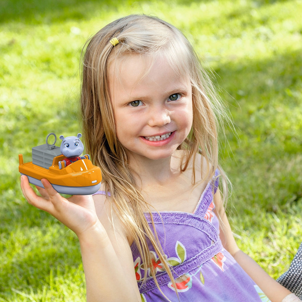 • Impreuna cu cei doi prieteni, copiii vor invata despre apa prin joc, descoperind cum se creeaza curentii, ce face ca apa sa-si schimbe directia si cum plutesc barcile. Setul ii va invata, de asemenea, cum sa coordoneze procese simple precum incarcarea si descarcarea containerelor si ridicarea si coborarea manuala a bratului macaralei
