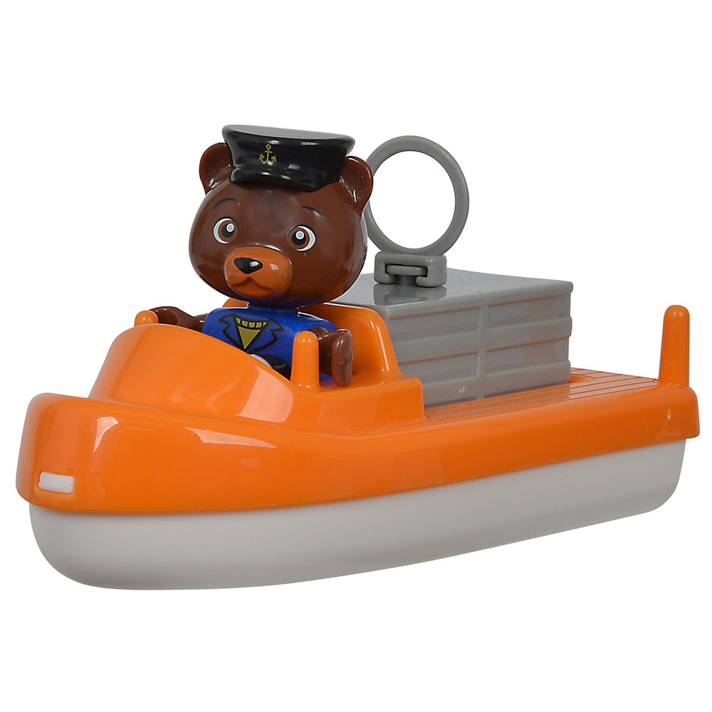 • Setul AquaPlay Container Port include un sistem de canale cu bazin portuar si o rampa de acces, o macara, o paleta de apa, o barca cu container, un vehicul amfibiu si doua figurine Bo the Bear si Wilma Hippo